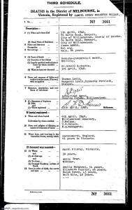 - Death: He died on 5 April 1940, at age 86, in Newport, VictoriaG, reg: 3661/1940**