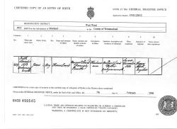 Sam JWG Hayman Birth Cert