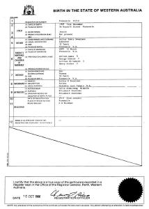 Jessie Sweetman Birth Cert